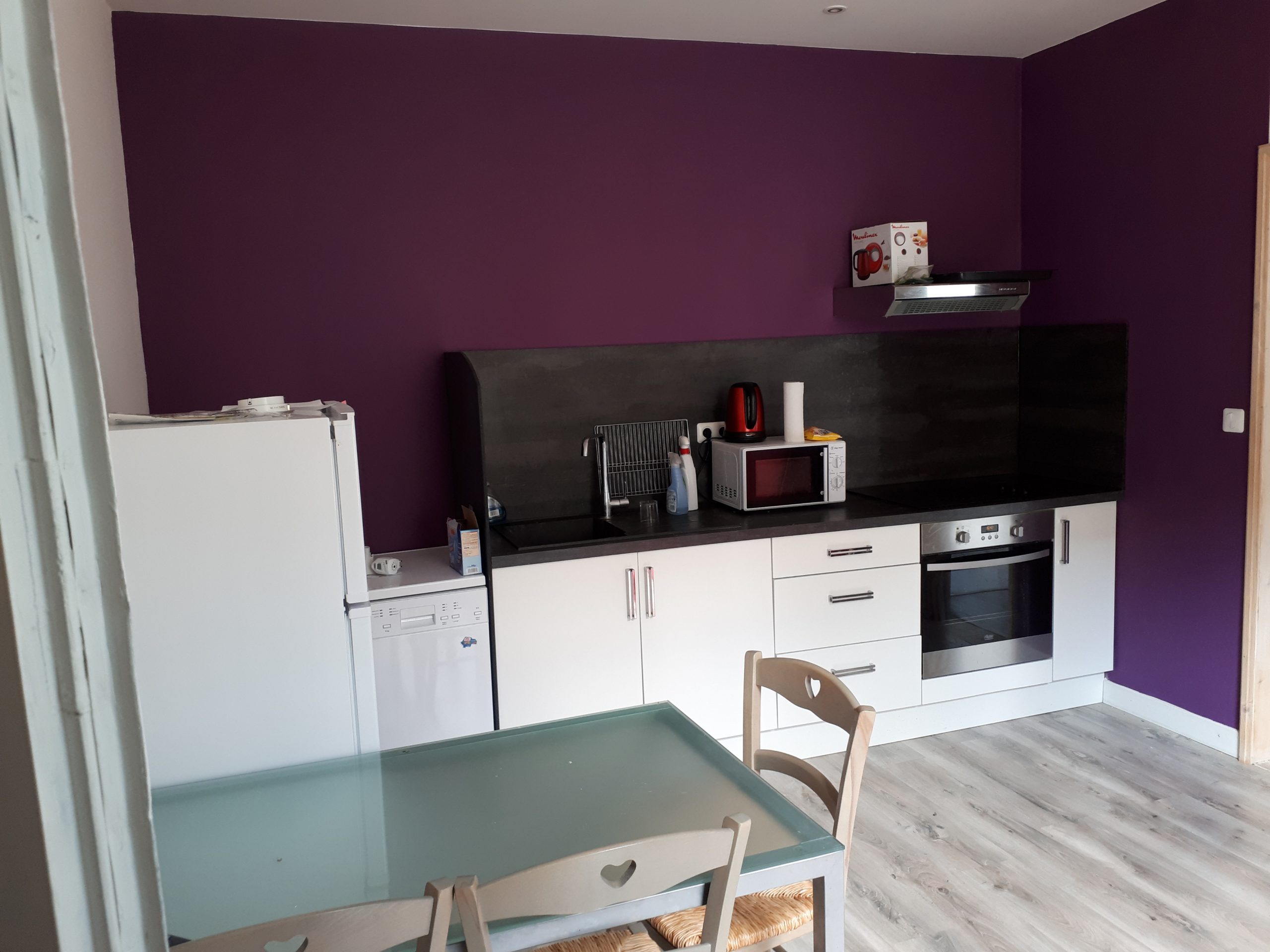 Équipement cuisine aménagée, avec four, micro-onde, plaque vitro, frigo (avec compartiment congélateur), télévision et machine à laver ; lave-vaisselle.