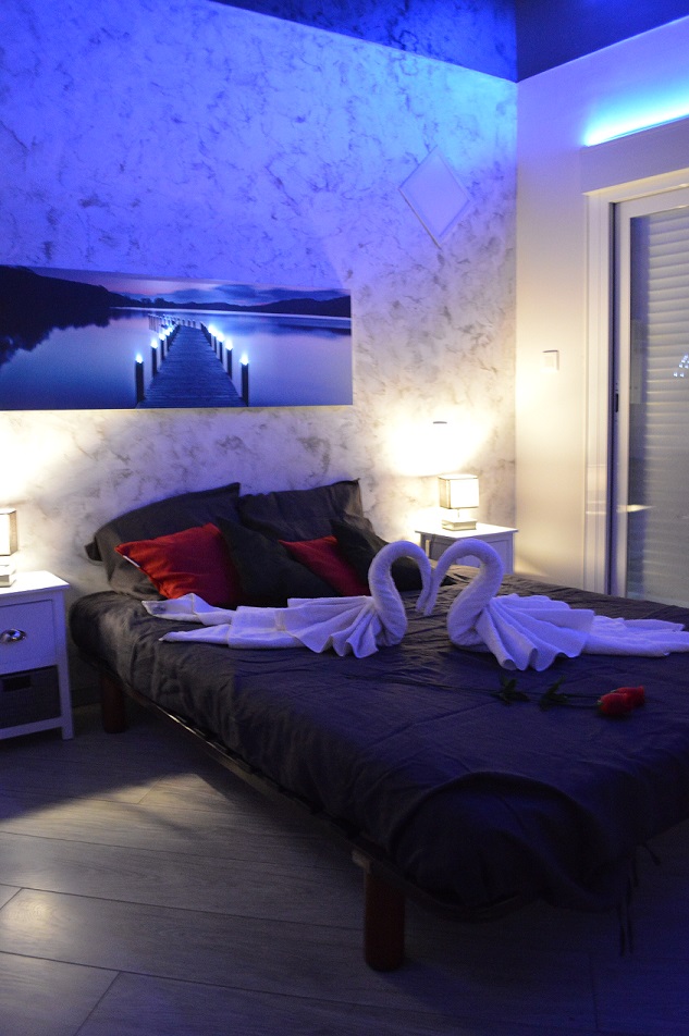 Salle de bain, avec grande douche équipé de chromothérapie pour atteindre un climat de relax idéal, a votre disposition aussi sèche serviette et sèche cheveux.