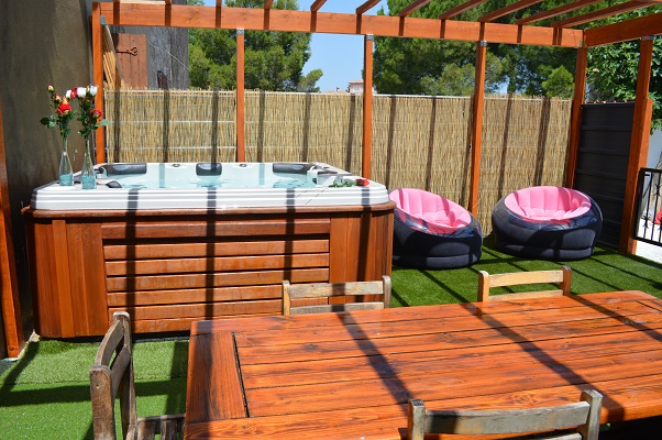 La terrasse et relaxante dispose d’un jacuzzi 6 personnes spacieuse pour se d tendre aux bruits des cigales. Plancha disponible