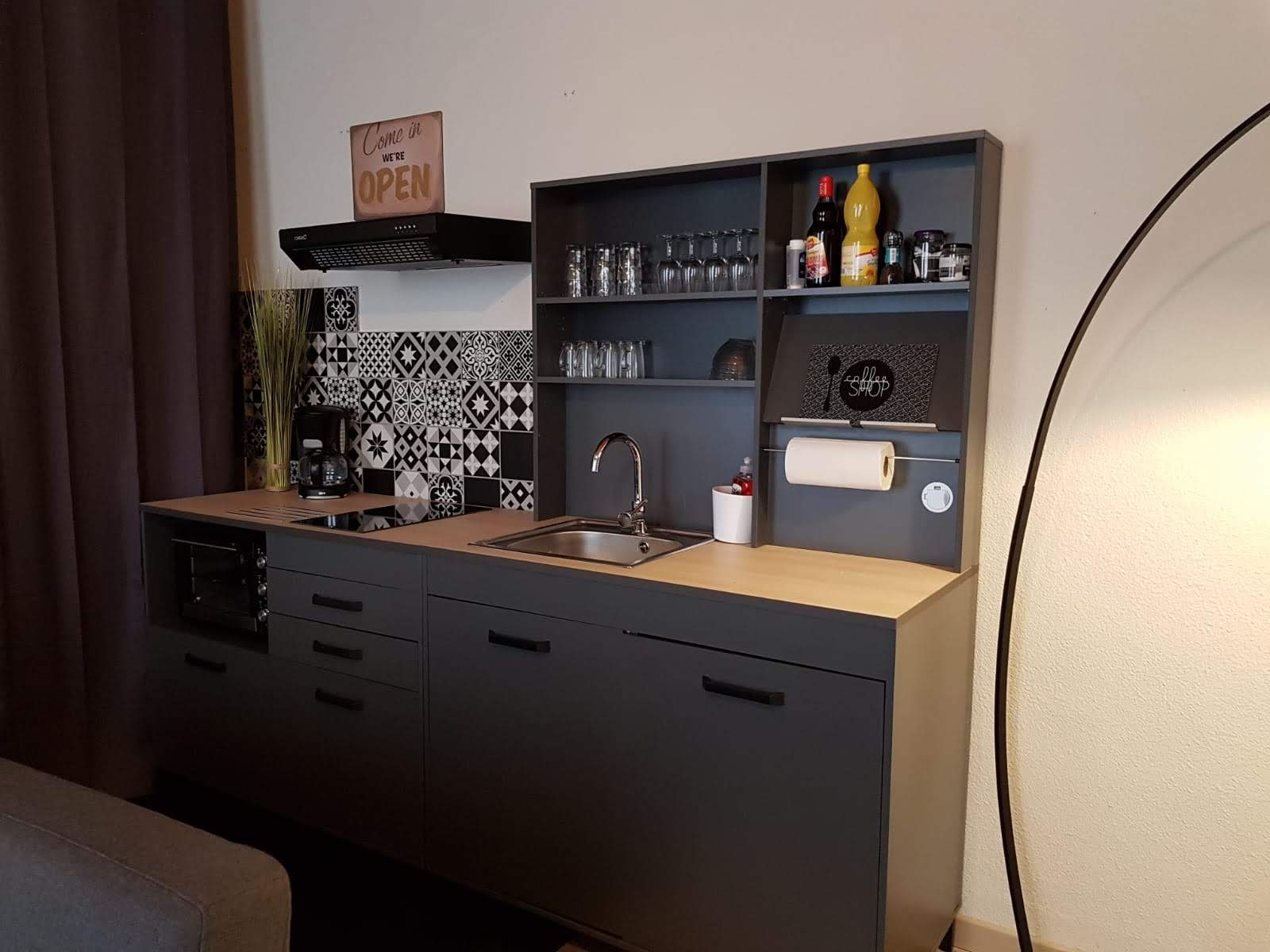 La cuisine est équipée d un four, plaques viro, hôtel, micro ondes, frigo/congélateur