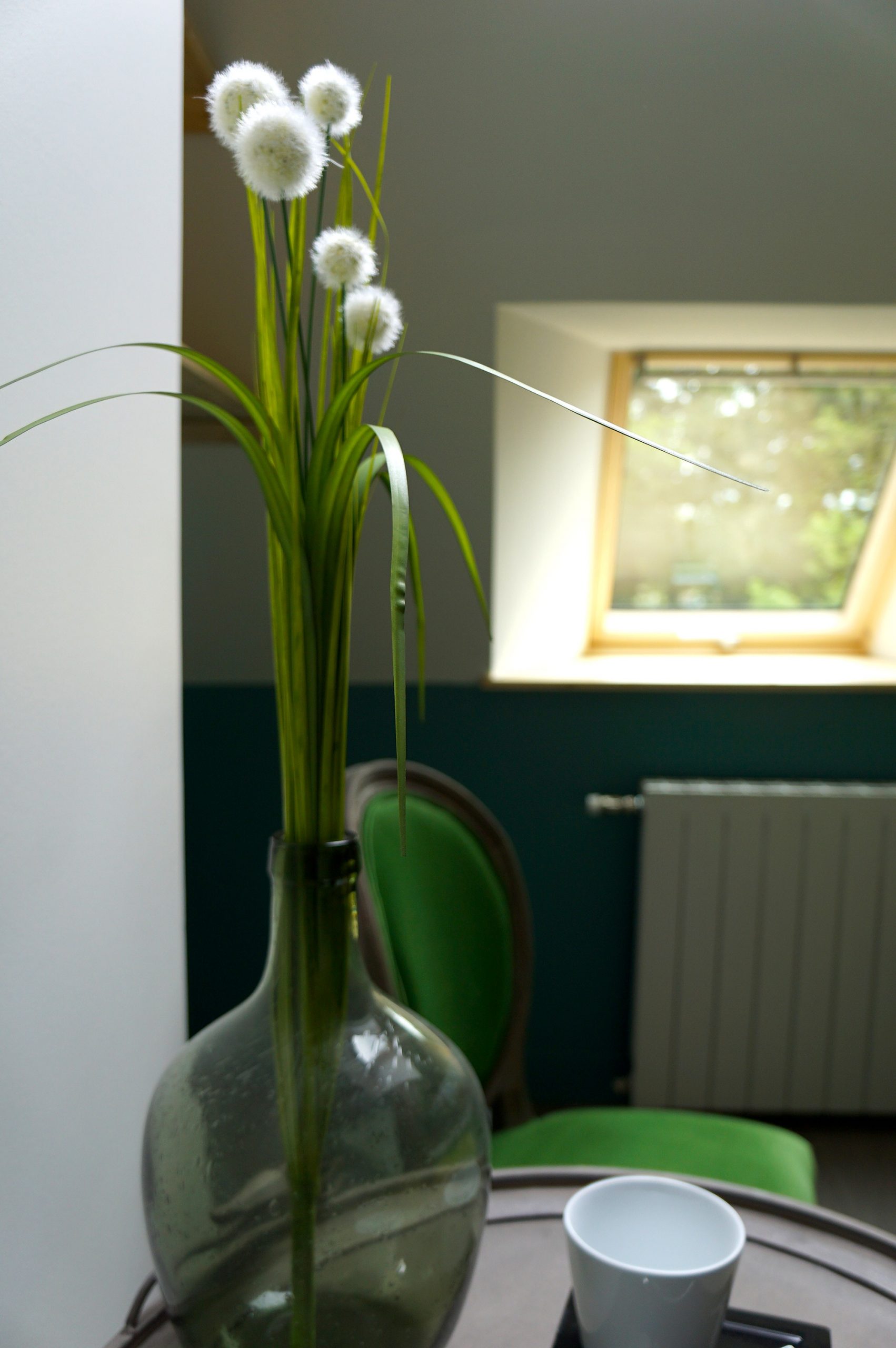 La Chambre Dame Jeanne pour 1- 2 personnes : une ode à la nature avec ses tons frais et printaniers : 2 lits de 90 cm – salle de bain séparée avec douche et toilettes- de 70 à 85€ (petits déjeuners compris)