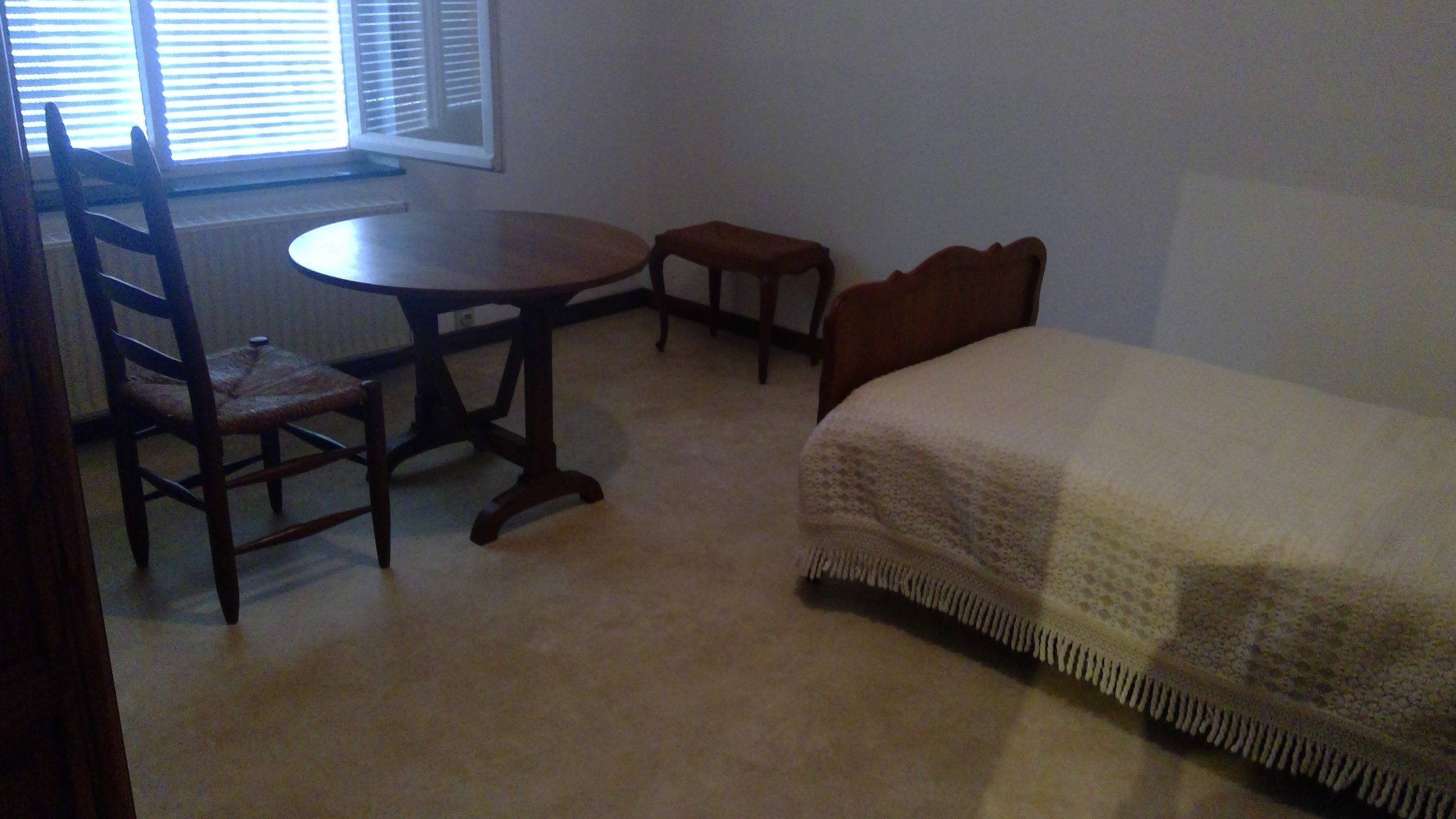 Chambre A : 25m², lit 1 personne, garde-robe, table et chaise 30,00€/nuit du lundi au vendredi, 45.00€ le WE (samedi, dimanche)