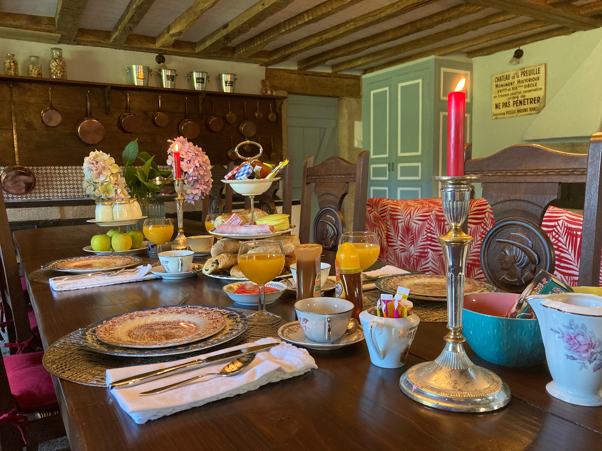 Réveillez vous avec des chants d’oiseaux, puis descendez prendre votre petit-déjeuner dans notre cuisine traditionnelle du château.
