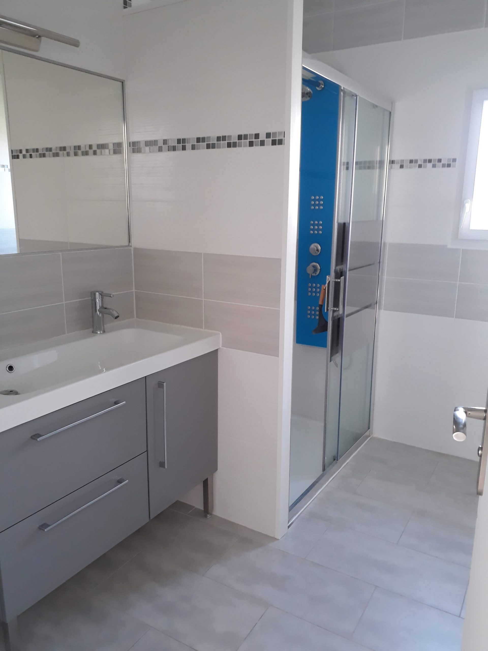 La salle de bain avec une douche à l’Italienne et le WC séparé.