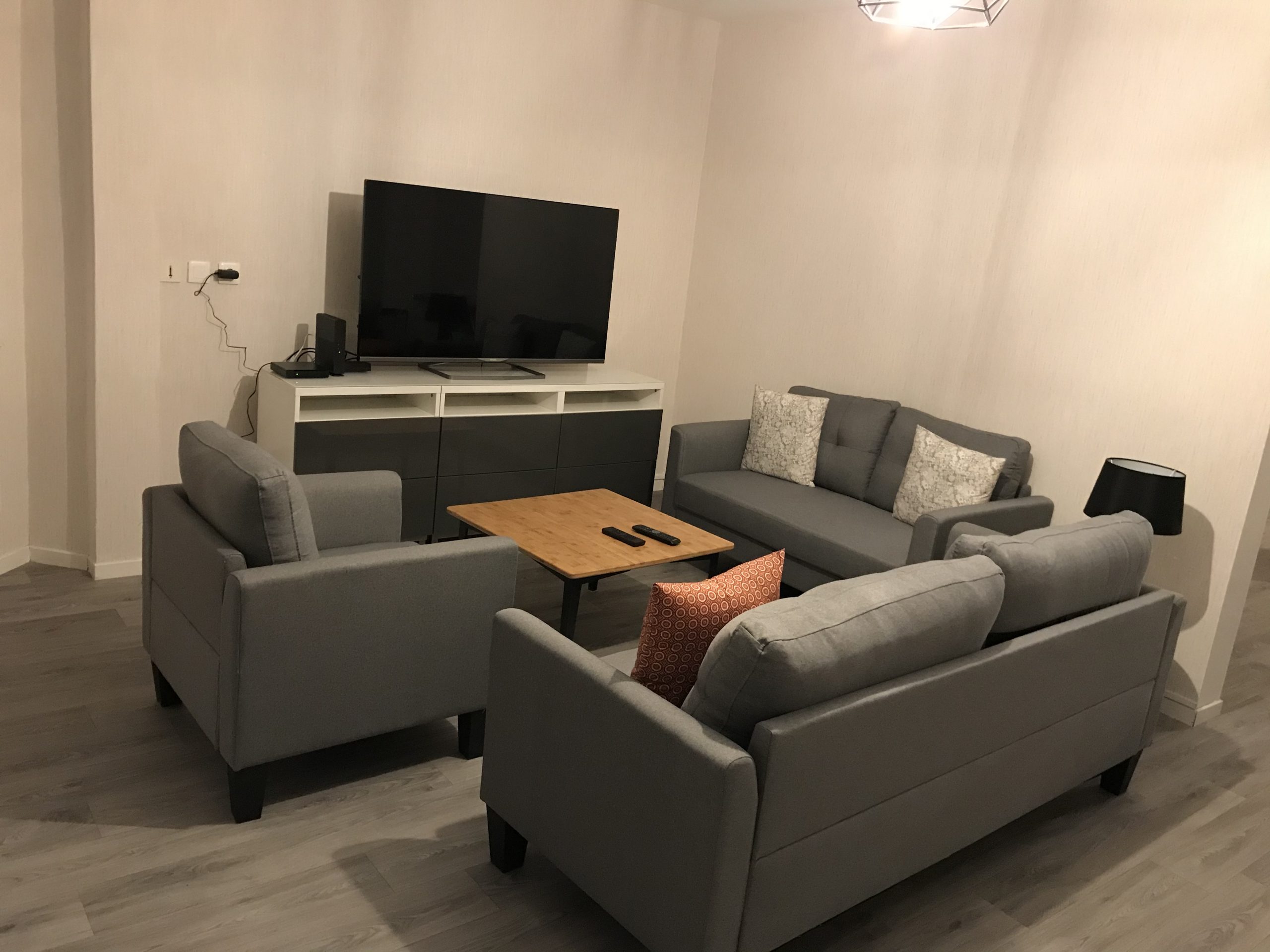 Grande pièce de vie, TV grand écran 140 cm,