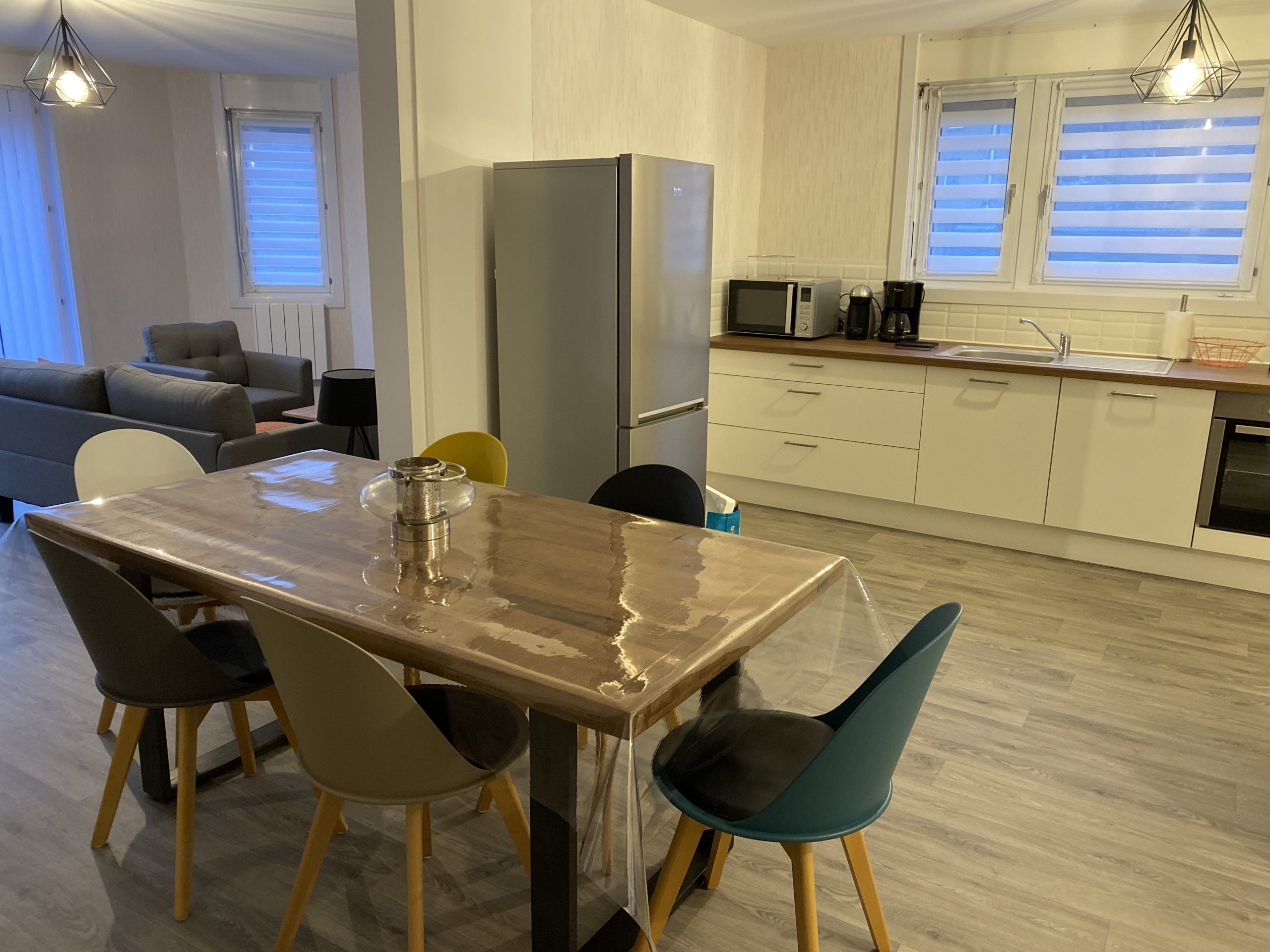 Cuisine équipée avec lave vaisselle, 2 cafetières dont une Dolce Gusto, micro-onde, four, plaque induction …