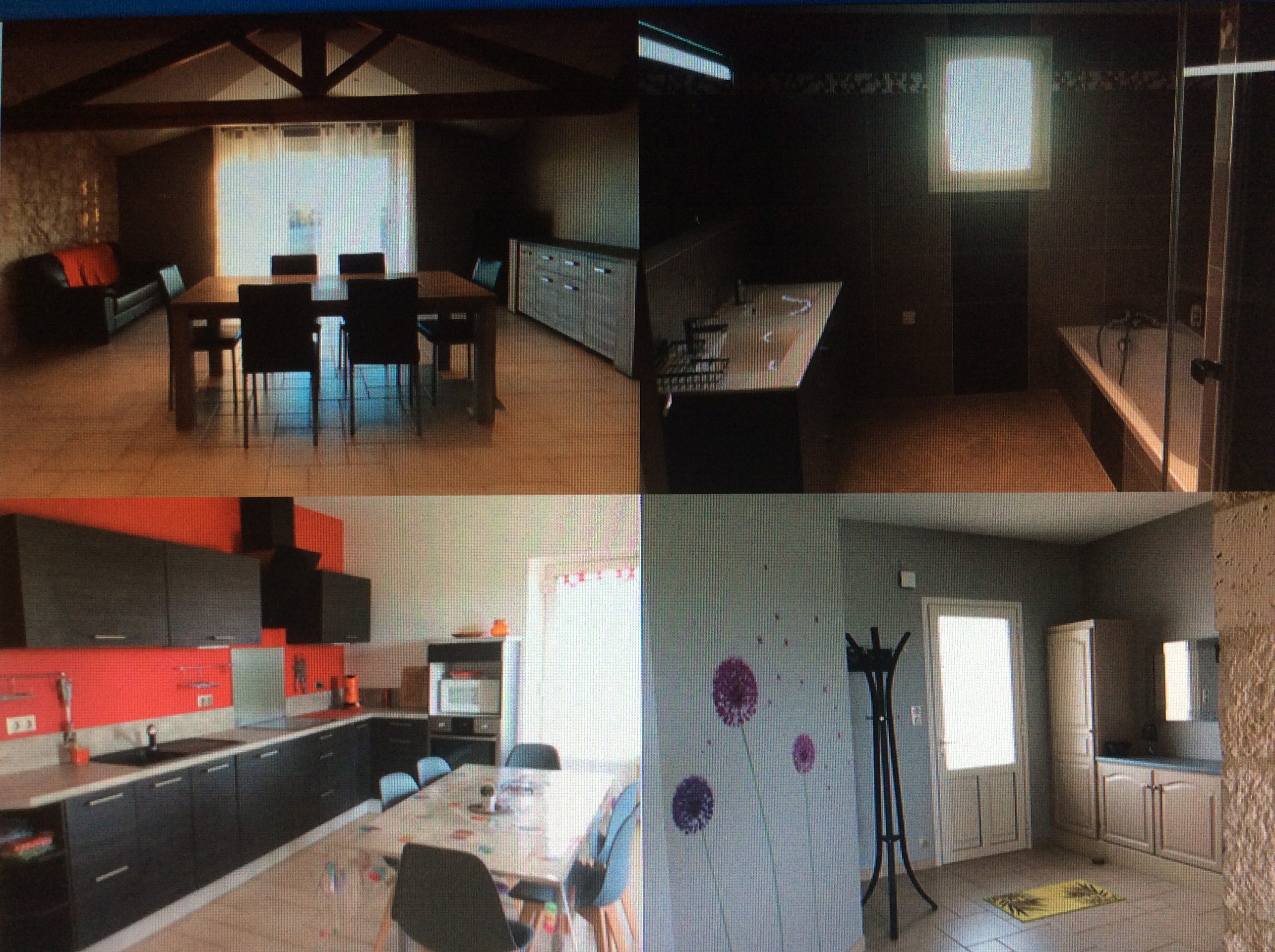 Composition :1chambre avec 1 lit en 160 cm et sa salle d’eau,1 chambre avec 1 lit en 140 et 1 chambre avec 2 lits en 90. 1 salle de bains,1.buanderie,1 cuisine parfaitement équipée frigo américain,lave vaisselle etc…,2téléviseurs ,parking et piscine hors sol et Jacuzzi pour 3 .
