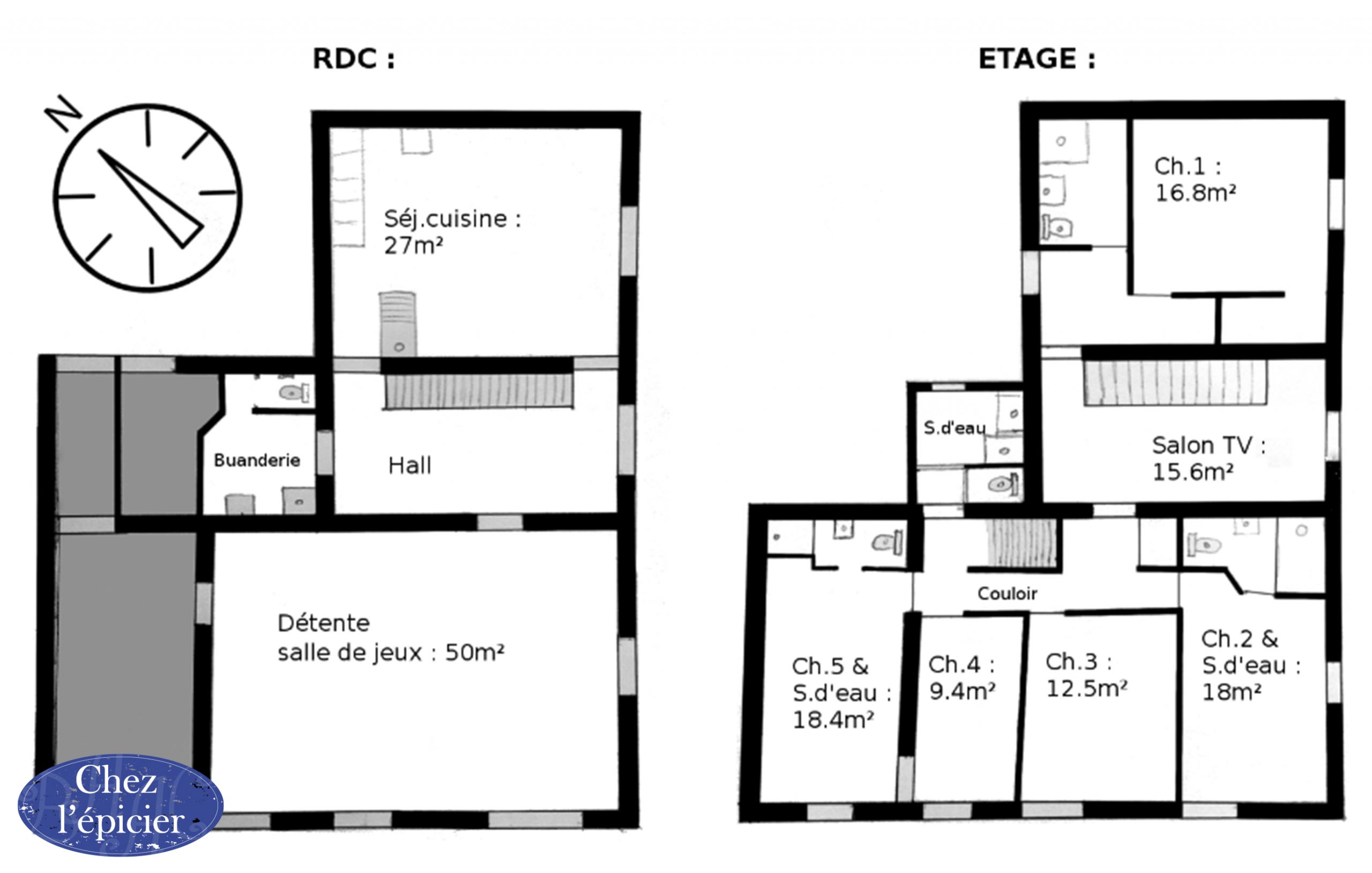 Nous entrons maintenant dans le coin nuit du gîte ou vous trouverez cinq chambres, quatre salles d’eau et quatre toilettes qui sont soit privés, soit sur le palier.