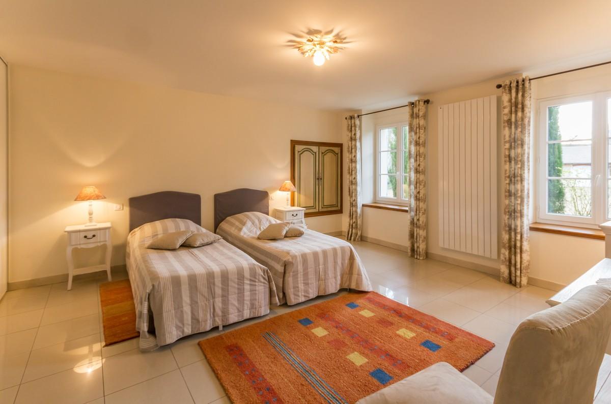 A l’étage : 3 chambres (1 lit 160X200) avec salle de douche italienne et WC chacune, 1 chambre (2 lits 90X200) salle de douche italienne et WC. TV dans chaque chambre.