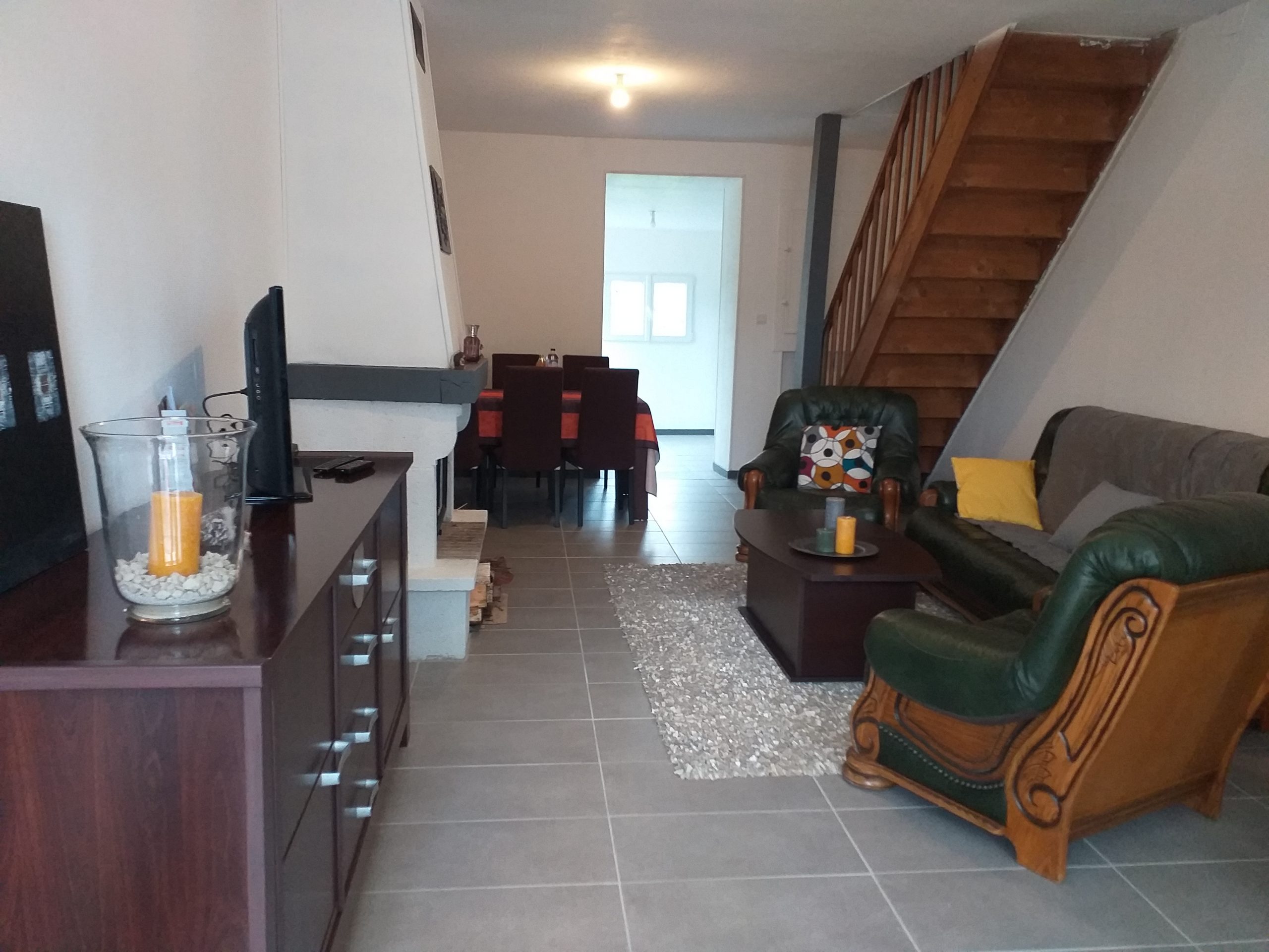 Un salon/salle à manger pour 6 personnes avec cheminée.