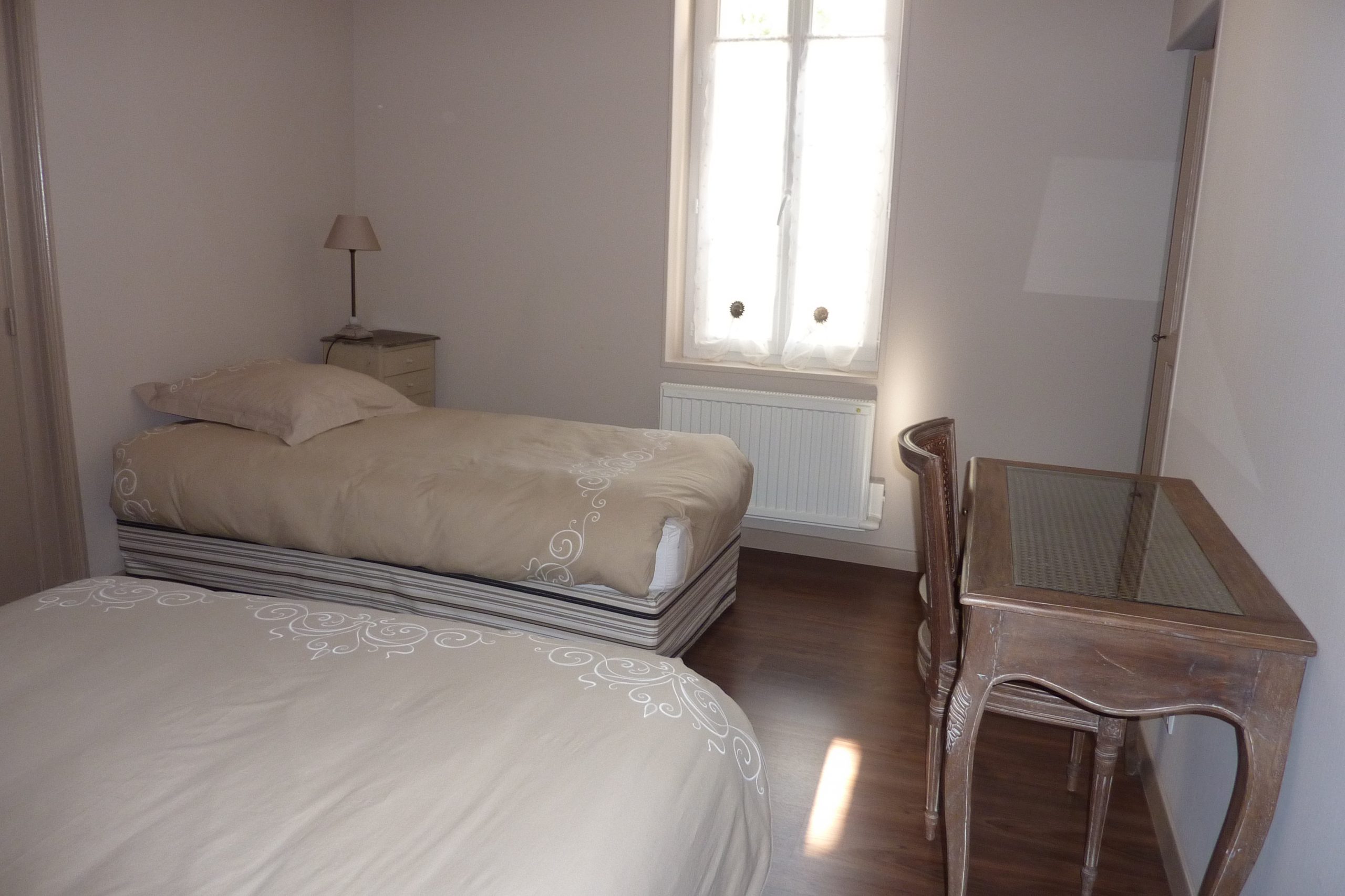 Rdc : Hall d’entrée, local technique, buanderie (sèche-linge), cuisine équipée, séjour/salon, 1 chambre (1 lit 160) avec salle d’eau et wc privatifs – 1er ét. : 3 chambres (1 double avec lit 160, 1 triple avec lit 140 et lit 90 et 1 twin avec 2 lits 90), salle d’eau, wc – Chauffage électrique – Lit bébé, cave aménagée à disposition, possibilités de réunions sur place (10-12 pers. maxi), dégustation des vins du Centre Loire au domaine du propriétaire – Point de départ pour de belles balades dans le vignoble et la Loire à vélo.