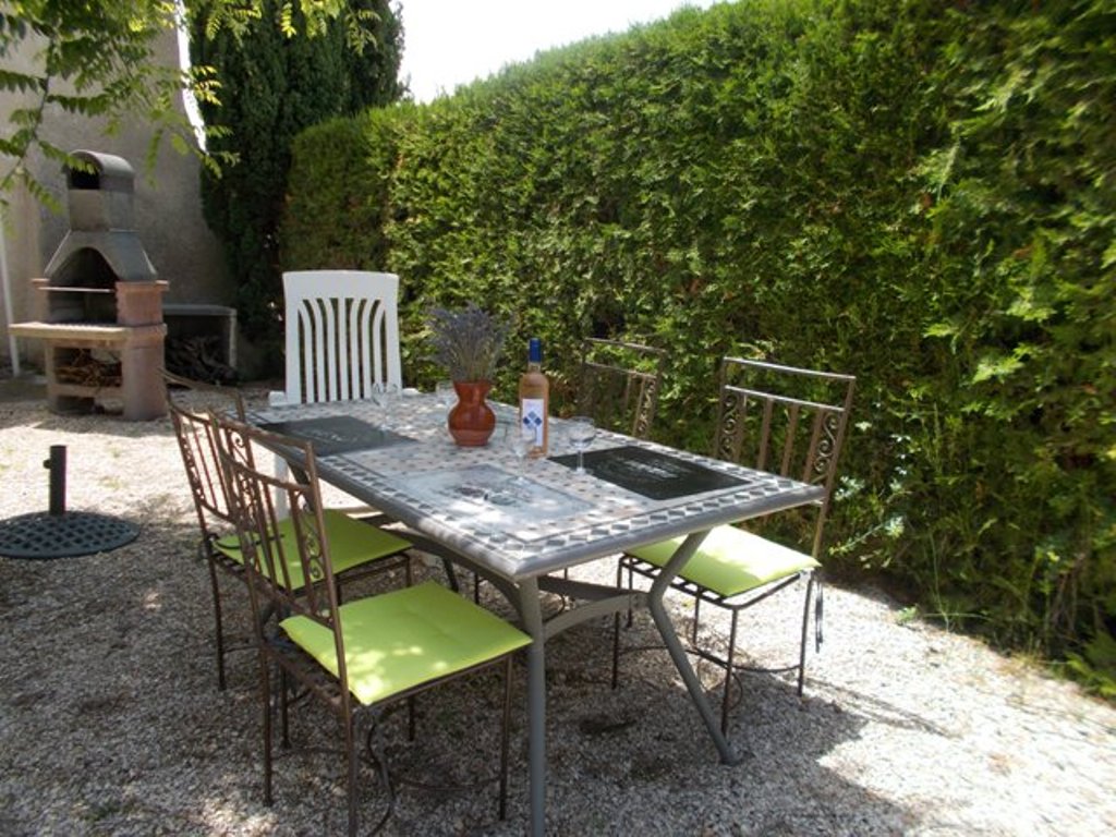 Cour ombragée, barbecue, transats, salon de jardin, abri voiture.