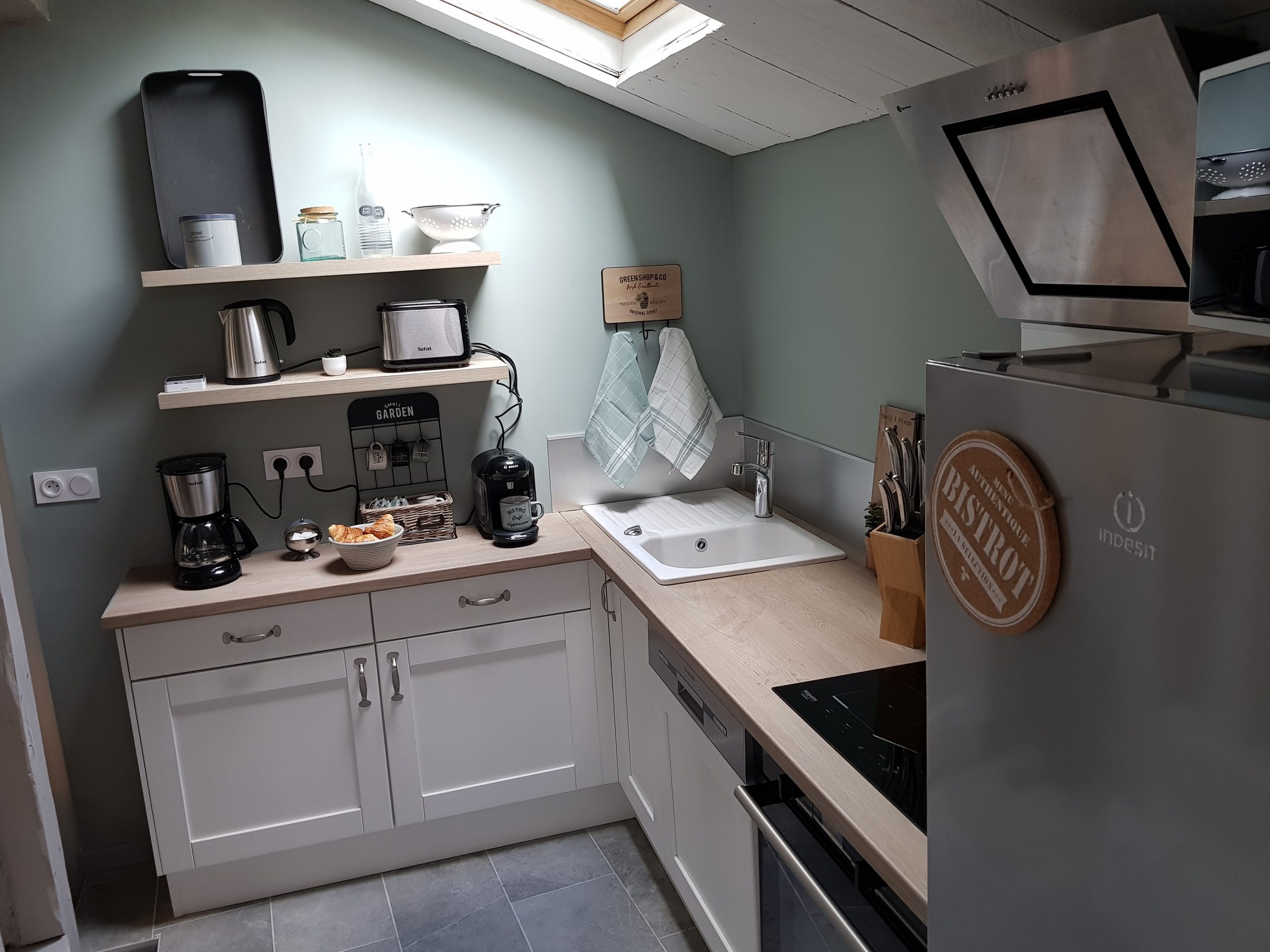 Elle se compose d une lumineuse pièce de vie avec cheminée décorative et canapé convertible de haute qualité, donnant sur une cour arborée privative ou vous pourrez prendre votre petit déjeuné en toute intimité durant les beaux jours ou passer un moment agréable en famille ou entre amis autour du barbecue. Une cuisine entièrement équipée (lave- vaisselle, frigidaire,congélateur, cafetière, Tassimo, bouilloire, grille pain, four , plaque de cuisson , hotte et micro onde). Au même niveau, une buanderie avec machine à laver et WC.
