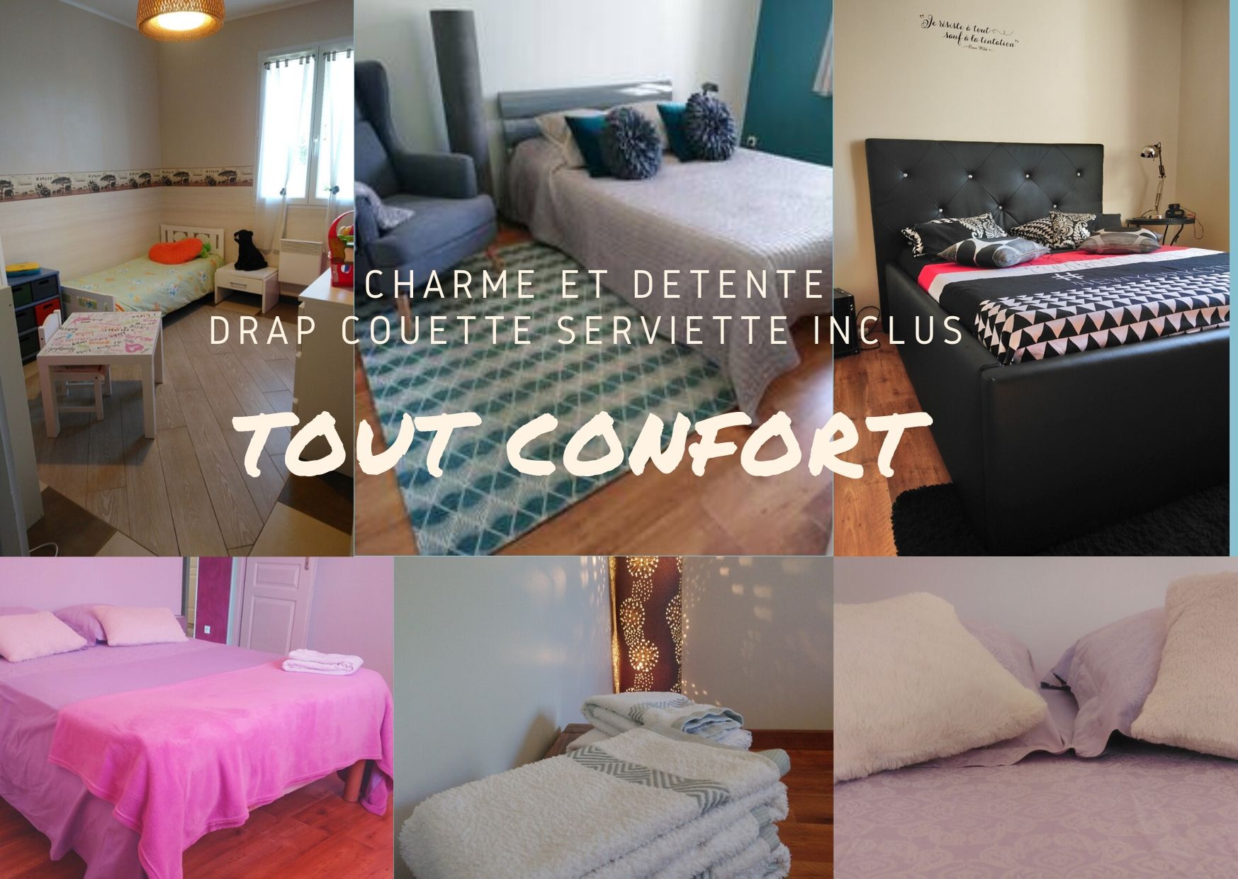 4 chambres pour vous accueillir 3 lits double et 1 lit simple et 2 lit superposer pour enfant.