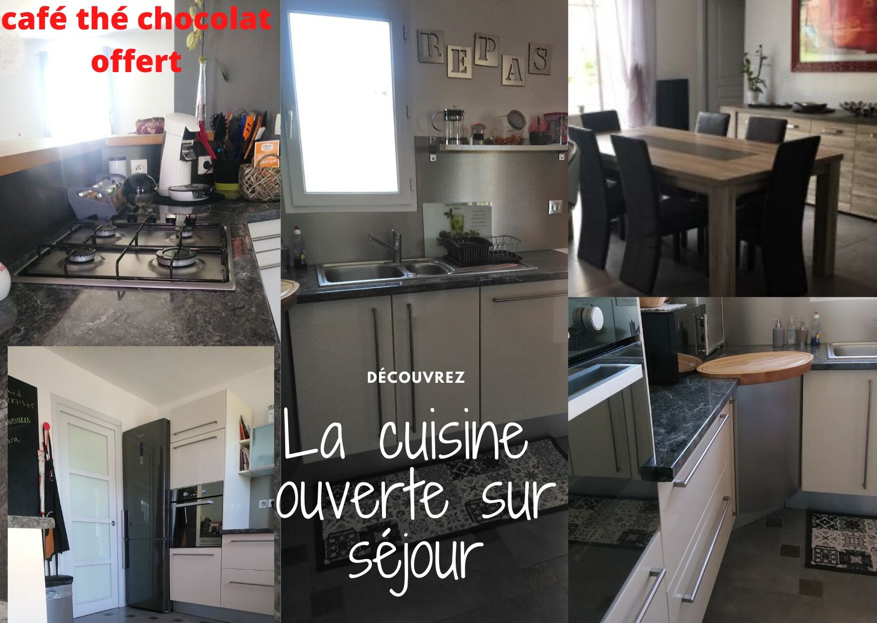 1 canapé lit dans un grand salon séjours .cuisine ouverte équipé pour la préparation de vos repas.