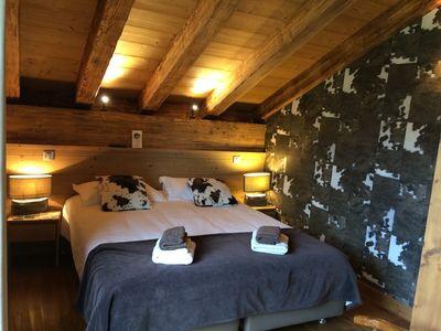 Chalet avec cuisine toute équipée, 4 chambres avec salle de bain en suite, jardin avec barbecue.