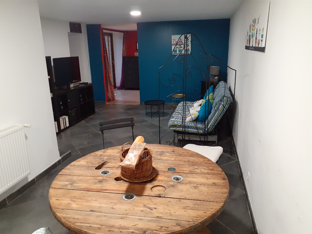 Appartement individuel comprenant : cuisine équipée, WC salle de bain,salle à manger,salon avec canapé convertible en lit 2 places(préparé en lit sur demande),1 chambre lit double avec vue sur terrasse,WI-FI, 4 Bain de soleil extérieurs, barbecue et parasol sur demande, draps fournis, , serviettes. L’appartement n’est pas climatisé mais reste frais l’été. à 4 km du lac des Vieilles Forges à 14 km de Rocroi : ville fortifiée Vauban. à 20 KM Parc terraltitude Paintball, tyrolienne, accrobranche
