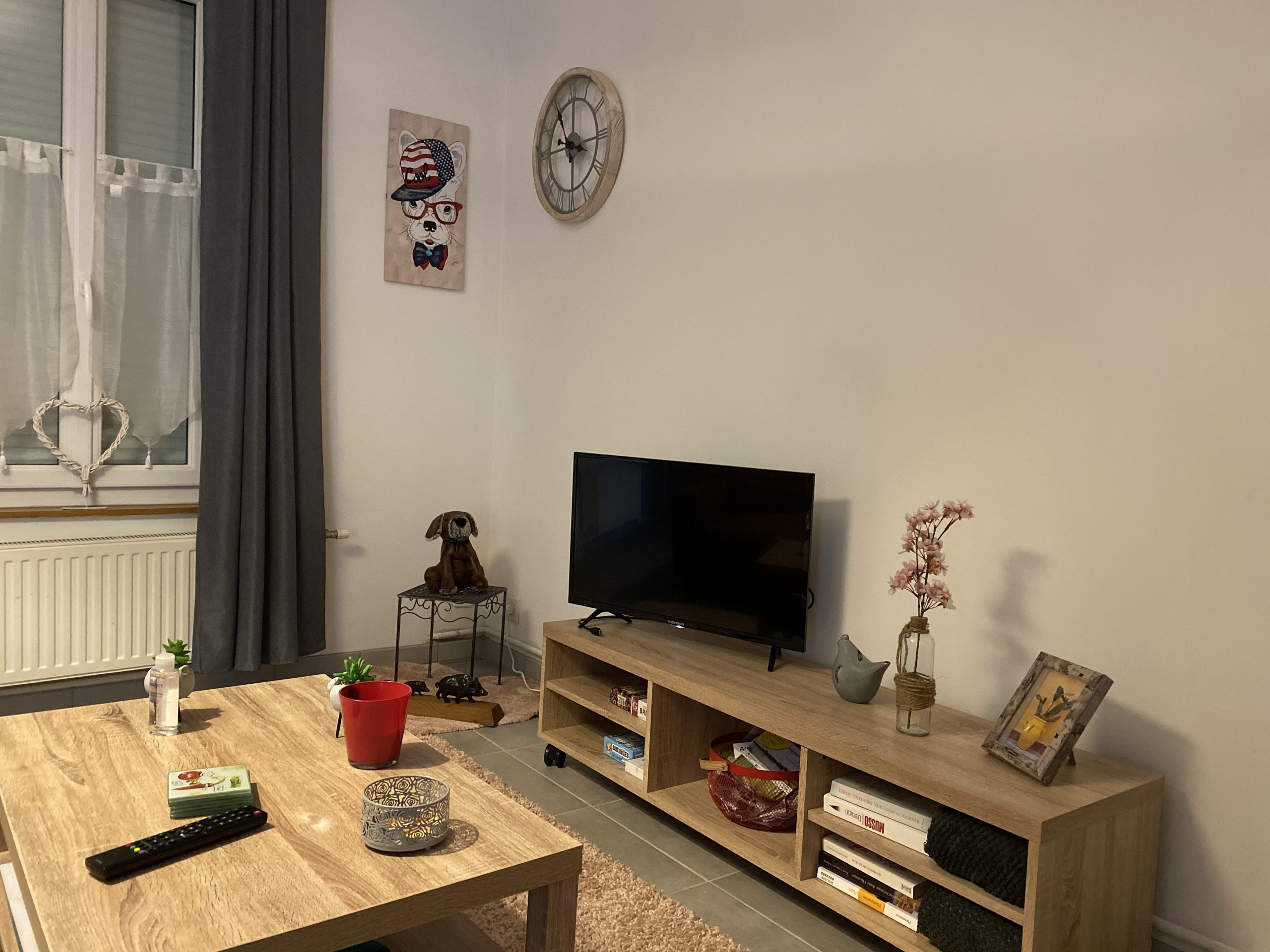 Cuisine équipée avec plaque gaz, vaisselle, couverts. Lave vaisselle